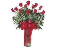 Adana çiçekçi firmamızdan görsel bir ürün cam vazoda 12 adet kırmızı gül Adana çiçek sitemiz ürünü